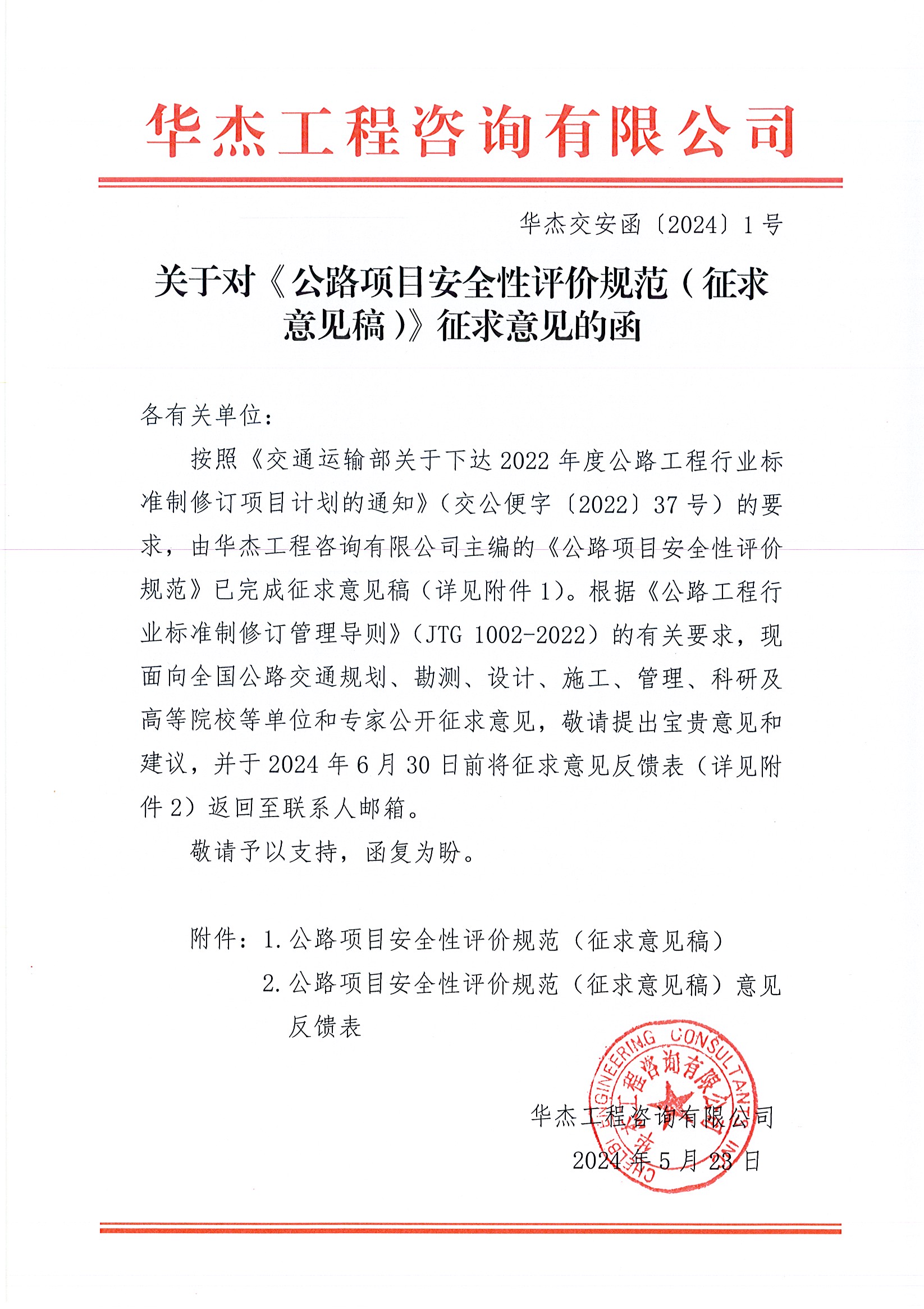 关于对《公路项目安全性评价规范(征求意见稿)》征求意见的函